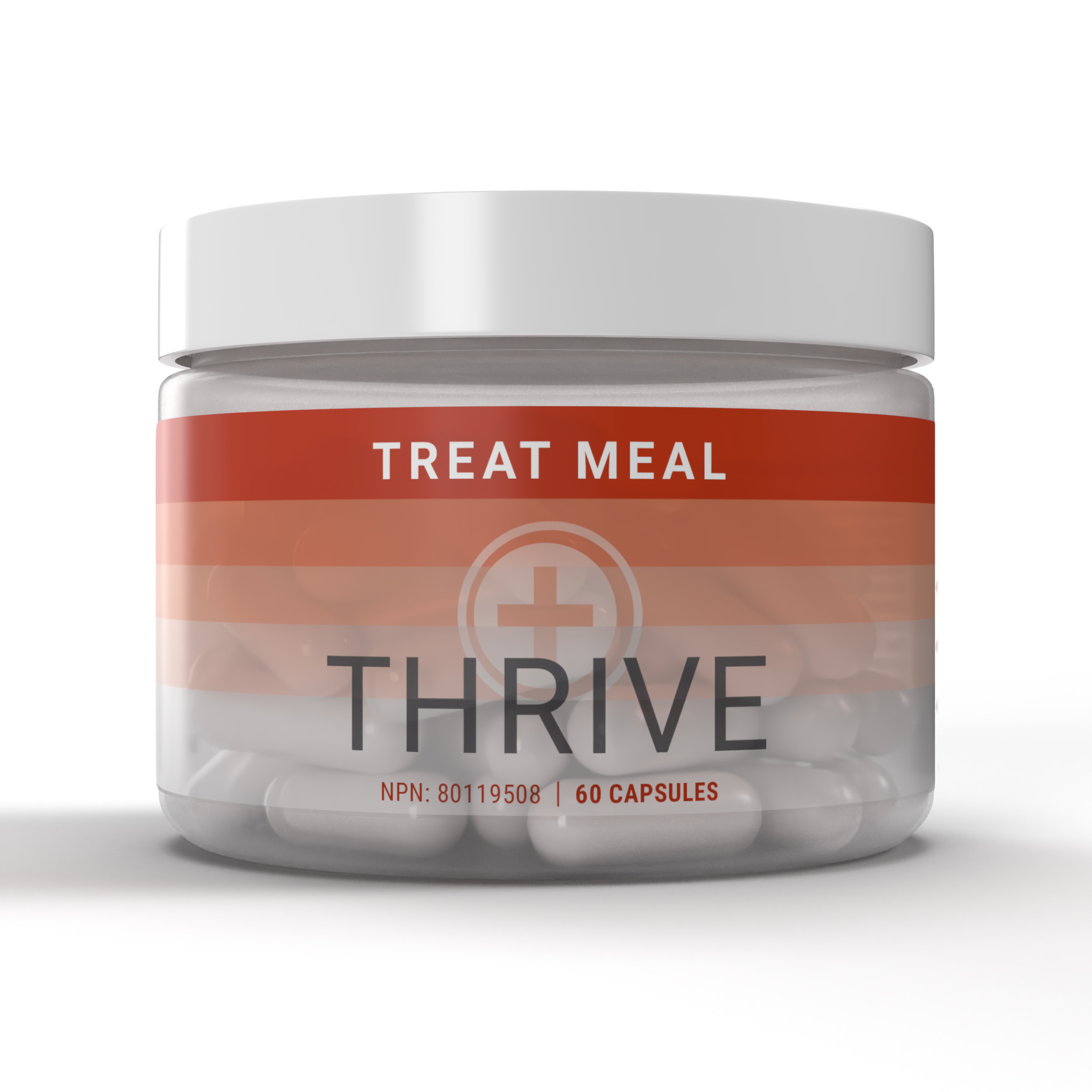 Consider adding THRIVE Treat Meal to your daily THRIVE Experience, as well as taking when needed with high carbohydrate, high fat and sugary meals. Take Treat Meal with a glass of water.